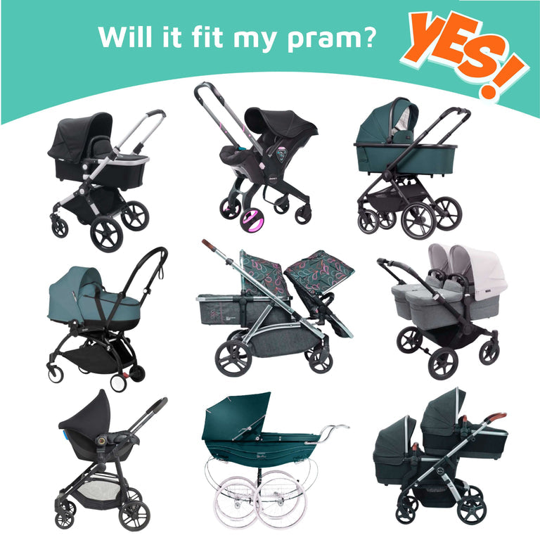 Will it fit my pram or pushchair? Yes! SnoozeShade Original Deluxe is universally sized and fits any single-width pram or pushchair with a hood, including jogging strollers.